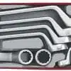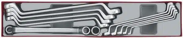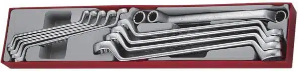 11 piece double ring spanner set ranging from 6x7mm to 30x32mm made from chrome vanadium steel with a satin finish. DIN 838/ISO 3318. The set is supplied in a unique Teng Tools drawer width TTX tray and can be used either on it’s own or as part of the Teng Tools TC control system.
