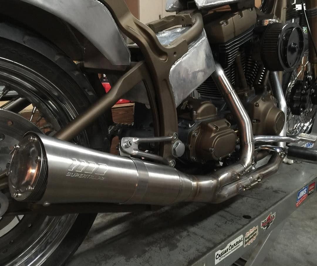 Muffler body is 3 1/2″ diameter and flare out to 4″ diameter.