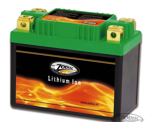 Battery technology moves fast forward and these affordable Genuine Zodiac Lithium-Ion (Li-Ion) batteries provide a load of advantages compared to any conventional type of battery. They weigh a third, can survive five to six times more load sequences, up to six times the lifetime and provide up to 50% more Cranking amps than any lead-acid, AGM, or gel battery. Apart from this, Li-Ion batteries keep their load up to twice as long and can withstand up to ten times more Amps when charging, resulting in a much shorter charge time when riding or when connected to a battery charger. Don’t be mislead by the fact that dimensions as stated are smaller as your current, old-fashion lead-acid battery; a Li-Ion battery simply is that powerful. All Zodiac Li-Ion batteries feature double poles and are supplied with plastic fillers to make sure they fit in your battery tray like a glove. Consequently we only have 4 part numbers to suit almost any 12-Volt Harley to present. Have a monster motor with high compression that is always a pain in the-you-know-where to start? Simply go for the Li-Ion battery with the highest capacity and there you go!