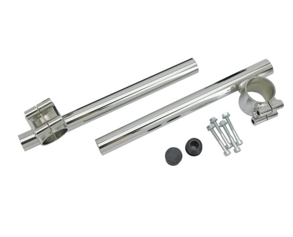 These clip-ons mount to the front fork between the top and lower triple clamps for that great Café Racer low look. Clip-ons are available in black or chrome for 39mm and 41mm front forks. Sold in sets of left and right.