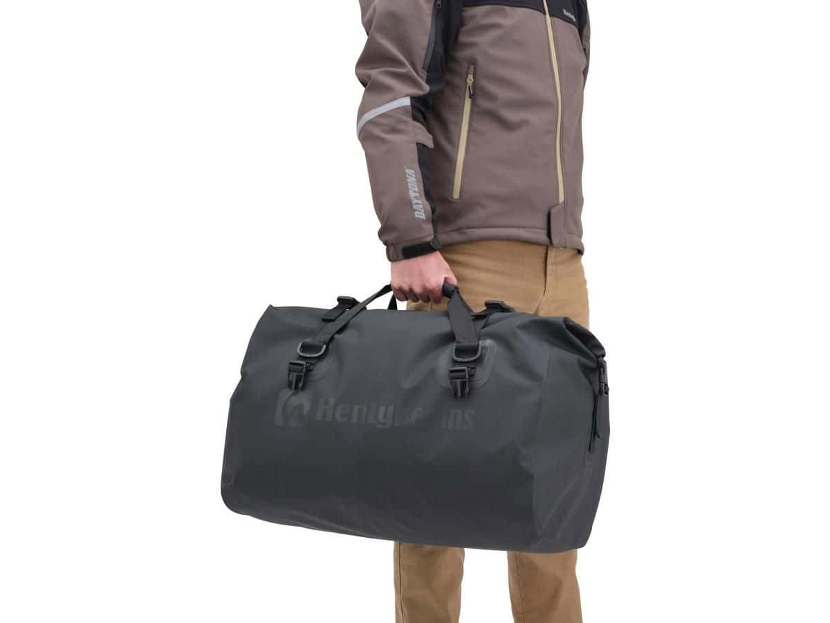 Water-resistant HenlyBegins seatbag in black with a volume of 63 liter.
