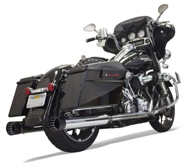 - 4″ Black Straight Can Muffler with a specially designed 3 stepped baffle 2¼” ID.