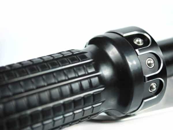Two flush built-in M5 stainless steel mounting screws ensure secure and stable clamping of the push-button control to all handle bars.