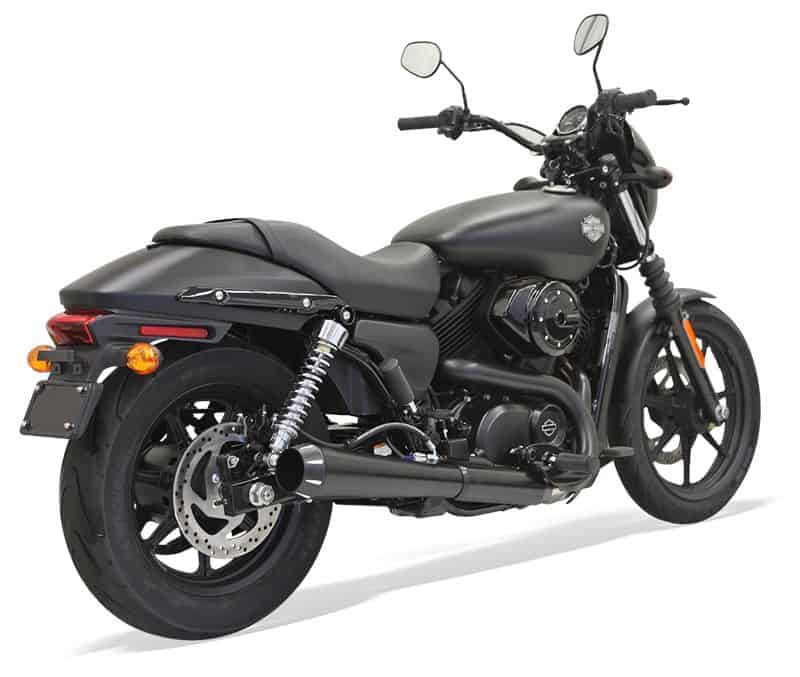 4″ Short Megaphone style performance muffler in black with Black Billet End Cap with contrasting machined flutes. Includes small heat shield that replaces stock heat shield.
