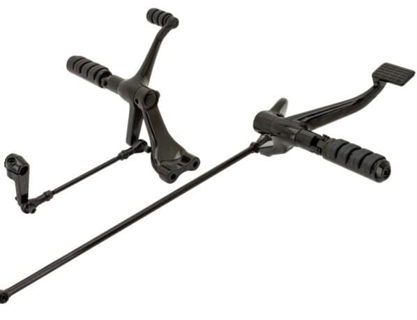 These beautifully finished forward controls are available as a stock replacement as well as in a 2″ (5 cm) extended kit. Both shift and brake levers are aluminum forgings that have flawless chrome or deep-black finish. Extended kits mount on the same tabs as the stock replacement controls. Kits include ISO style pegs for more comfort to your feet. Kits include chrome plated mounting hardware.