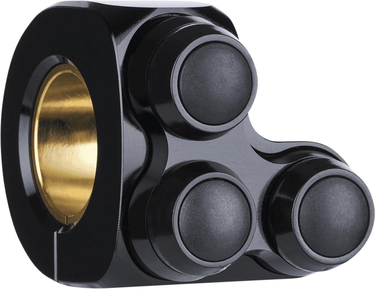 - The two or three buttons per unit are always black. A hidden M4 stainless steel mounting screw clamps the housing securely to each handlebar.
