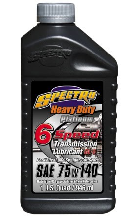 Designed by Spectro in response to complaints from Harley owners about the greatly operating but noisy new 6-speed transmission as fitted from 2006 to present in the Dyna and 2007 to present in Softails and Touring models. Formulated to significantly reduce gear noise and provide easier, smoother shifting, this API GL-5 rated SAE 75w140 formulation eases shifting even when cold. This full synthetic provides ultimate lubrication protection. High loads and extreme heat do not affect the oil, so it performs well when pushed hard and long.