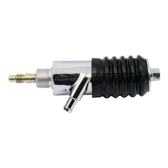 Stock style replacement rear master cylinder. Fits models equipped with the remote reservoir and regular type master cylinders. Chrome plated finish