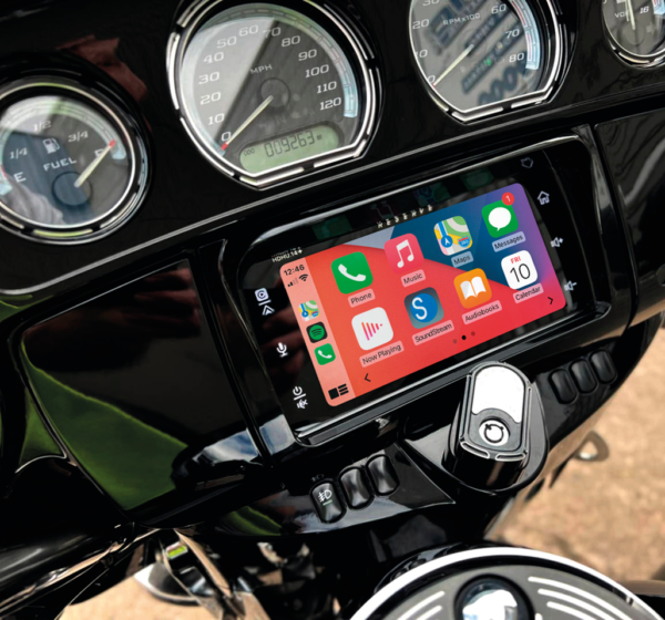 Plug-n-play Reserve Motorcycle Audio by Precision Power are upgrade head units for OEM Harley radios.