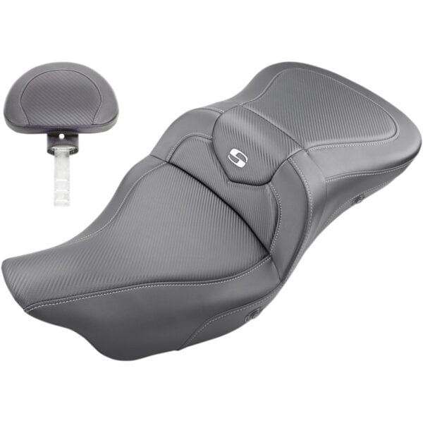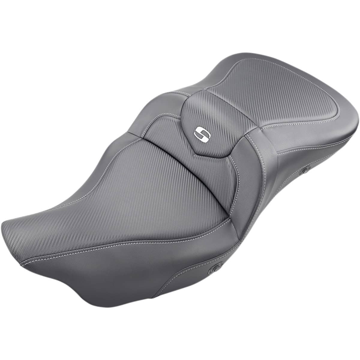 Saddlemen Heated Roadsofa™ Trike Carbon Fiber Seat with or without driver backrest Fits:> 2009-2022 Tri Glide Ultra FLHTCUTG / FLHTCUTGSE