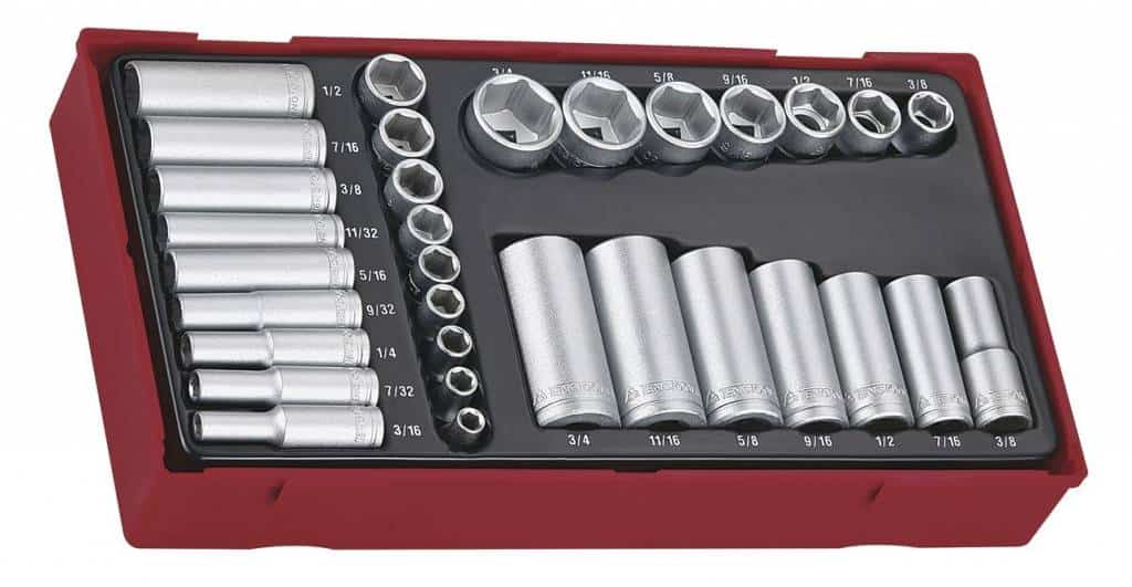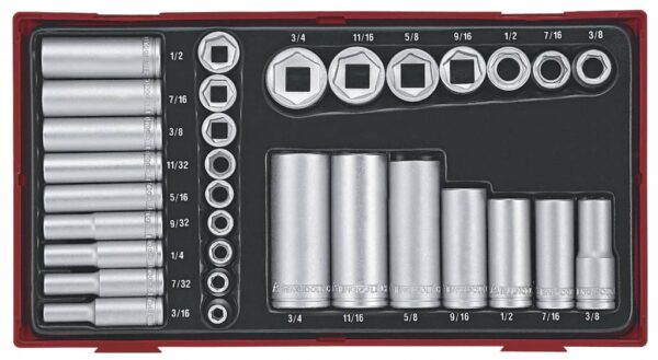 Socket set Tc-tray 32pcs AF 1/4+3/8 short long – USA Size